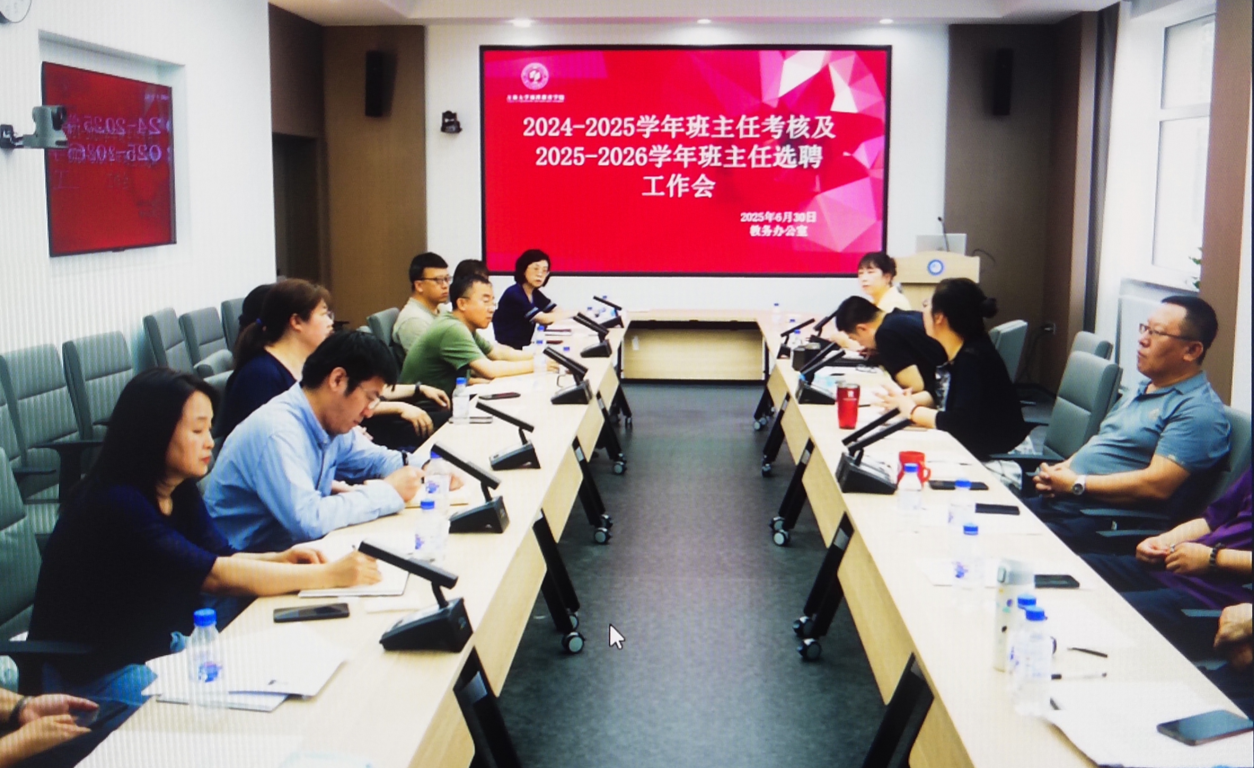 2025年6月30日上午,在413会议室召开“2024-2025学年班主任考核及2025-2026学年班主任选聘工作会”。会议由公司教学副经理赵娜主持,公司班子成员,教务办公室负责人、教师发展与质量管理办公室负责人、各教学研究室主任、员工工作办公室负责人,以及评职工作推荐小组负责人、教学委员会负责人参加。