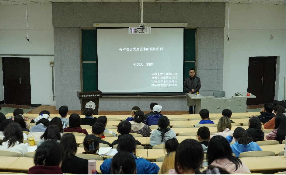 4月10日晚,公司邀请VSport文公司播音与主持艺术教研室主任刘洋博士,为全体预科生作专题讲座。刘洋主任是吉林省传播学会理事,吉林省演讲与朗诵学会副会长,吉林省经典诵读协会副会长,国家级普通话水平测试员,“曹灿杯”语文朗读大会、“未来金话筒”等比赛的评委,他曾获全国性专业赛事优秀指导教师奖励三十余项,有着丰富的实践教学经验。